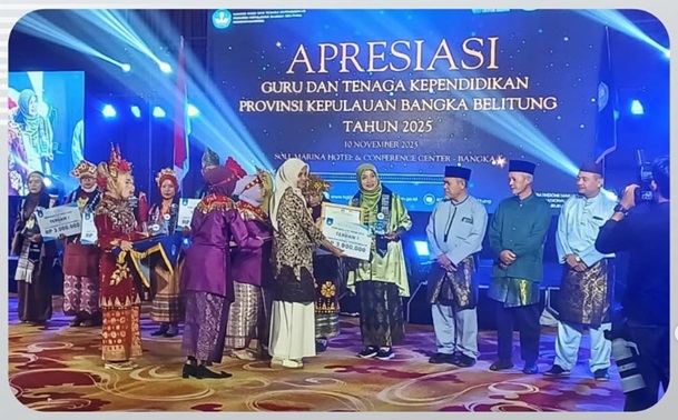 BerageNews.Com | ArtaSariMediaGroup ~ Pada malam yang penuh kebanggaan, 10 November 2025, di Soll Marina & Conference Center, Bangka Tengah, berlangsung acara bergengsi *Malam Apresiasi Guru dan Tenaga Kependidikan (GTK)* Provinsi Kepulauan Bangka Belitung Tahun 2025.
