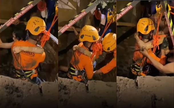 Detik-Detik Penyelamatan Pria Jatuh di Sumur