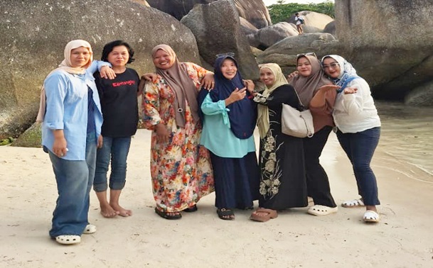Bulan ini, Bundo Kanduang KMP Keluarga Minang Perantauan mengadakan kegiatan *outbound tracking* di salah satu destinasi wisata alam yang memukau, Pantai Tanjung Tinggi, Belitung.